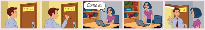 We say ‘Come in!’ when someone knocks at the door of a room.