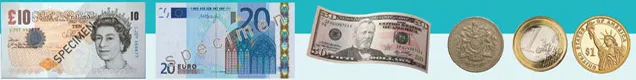 In the UK the currency [type of money used] is sterling [pounds]; in America it is the dollar; in