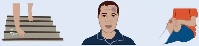 flood crack chip bump bang bruise graze dent stain lock