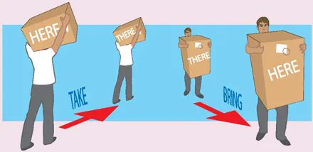 take (like go) = from here to there