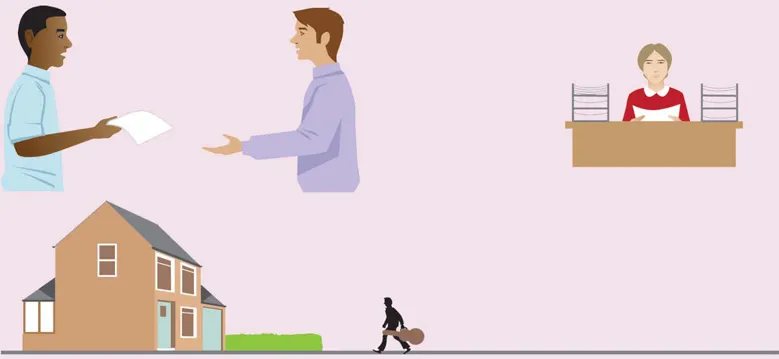 Please take this form to the secretary. (= the secretary is there)