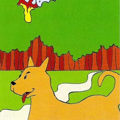 On the way, the man began to feel tired. He sat down to rest but quickly fell asleep because of all the wine he drank. The dog lay down by the man and waited for him to wake up. Then, all of a sudden, the dog smelled smoke. A fire broke out in the woods! A small wind was blowing, but it did not blow out the fire. The wind made the fire bigger!