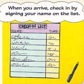 When you arrive, check in by signing your name on the list.