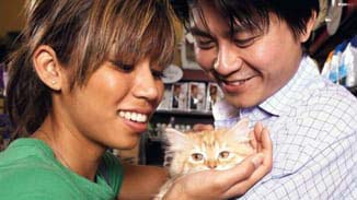 LANGUAGE NOTES • Oh! What a beautiful cat “Oh!” is used to show surprise or excitement. “What a …” is an expression that means “I think this is a very …” “What a(n) …” is followed by an adjective, which is usually emphasized. Notice the emphasis on “beautiful” here. • Dogs are more loyal than cats. Two things are being compared here (dogs and cats). Notice the structure of the sentences: (noun/s) plus “is/are more” plus (adjective) plus “than” plus (noun/s). The nouns and the adjective are content words here, so they are all emphasized. • Every single day Notice that each word here is stressed. The speaker wants to make a point, so she emphasizes each word equally. “Every single day” is a lot! • Good point here means “I agree with you.” • Take care of This phrase is used with animals, people and things. It can mean “watch a child while her parents are away,” “feed and house someone or something,” or “make sure things work properly.” (I always take care of my baby brother./ I take care of my bird by feeding it and cleaning its cage./ I need to take care of the broken sink.) • Yeah, you’re right. Notice the pronunciation of this expression — the words all blend together here. This casual expression is used to agree with someone that you know well. |