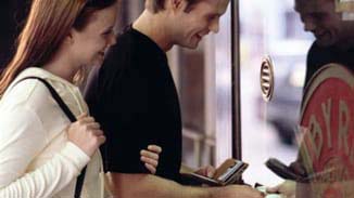 BOB: We’d like two tickets for the 3:30 show, please. TICKET SALES: Here you go. Enjoy the movie! [Inside the theater]BOB: Would you mind moving over one, so my friend and I can sit together?WOMAN: No, not at all.BOB: Thanks a lot!