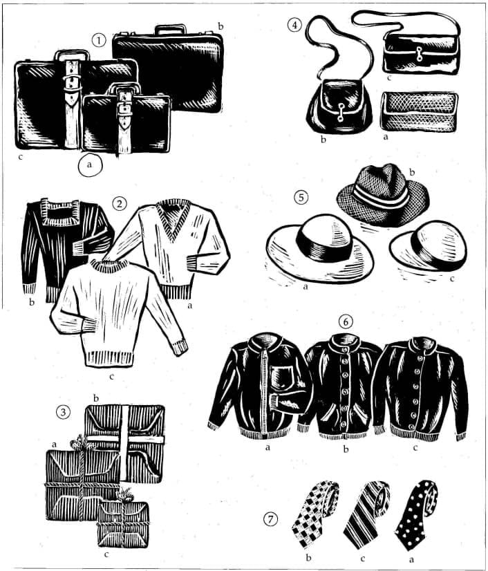 You will hear people at a lost property office describing things they have lost. Choose a, b or c to identify the correct item for each person.
