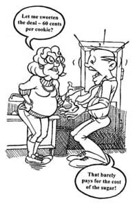 Bob: That's out of the question. At that price, it's not worth our while. The ingredients alone cost us 30c per cookie.