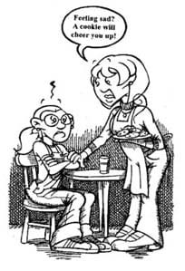 Susan: Here, take a chocolate chip cookie. That'll cheer you up for sure!