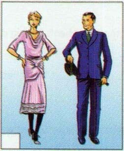 This must be the 1920s. I love the dresses women wore then—very straight and they came down to just above the knees. And they wore their hair short sometimes with a little wave. Men looked handsome, too, with those wide trousers. They hung out in jazz clubs all the time. What a wild time that was! No wonder they called it the "Roaring Twenties."