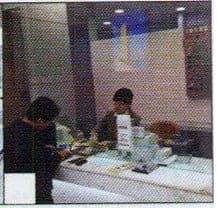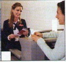 B: Just go straight. They're on the left. Just across from the check-in counters.