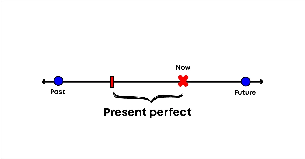 🔄 Present Perfect – Hành động có liên kết với hiện tại hoặc khoảng thời gian chưa kết thúc. Kim đồng hồ kéo dài từ quá khứ đến hiện tại (since, for, just, already, yet, ever, never).