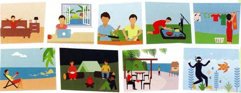 13. Look at the two pictures showing Julia Grant, a volunteer on a science project. Using the pictures, write a description of Julia’s daily routine. In your description, you should: