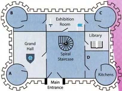 | Now as we move out of the Grand Hall, notice this wonderful spiral staircase in front of you. It's not in use any more due to health and safety reasons, but at one time that was the only way to get to the upper level. Now we have a lift, situated just down the hallway. If you would like to follow me, we will move straight ahead into the Exhibition Room. At the moment, as you can see, there's a fascinating exhibition of clothes from the 15th and 16th centuries, which you can spend some time looking at later. Now please turn to your left and cross this little anteroom to enter the next turret, which is the portrait gallery. Here you can see portraits of all the Westchester lords and ladies through the ages. |