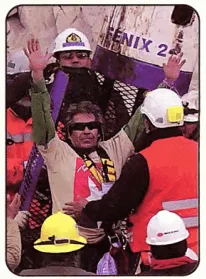 On the night of October 12, the workers were able to save the men. One by one the miners were brought up in a specially built elevator. They were weak, so the workers were very careful.Family members, friends, and people around the world cheered and celebrated. Church bells rang throughout Chile.