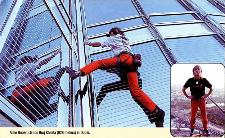 Today, Robert (a native of France) still climbs buildings. In 2004, he climbed Taipei 101 (the tallest building in the world at the time), and in 2011 he climbed the Burj Khalifa tower in Dubai. To reach the top of a building, Robert usually uses only his hands and special shoes. To climb the Burj Khalifa tower, though, he was made to wear safety ropes.