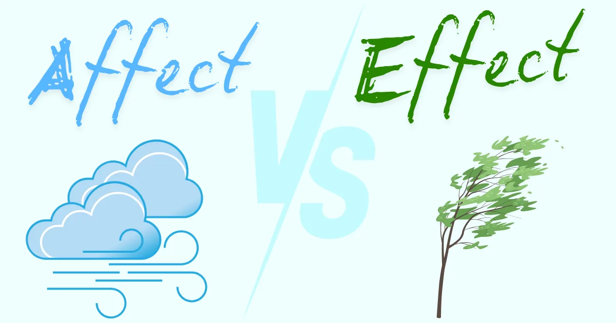 📌 Mẹo: Accept bắt đầu bằng A – như Agree (đồng ý). Except bắt đầu bằng Ex – như Exclude (loại trừ). 2. Affect vs. Effect Cả hai đều xoay quanh ý “ảnh hưởng” nhưng khác loại từ: “affect” là động từ (hành động), “effect” là danh từ (kết quả). Trong tiếng Việt, chỉ có một từ “ảnh hưởng” bao trùm cả hai, nên người học hay dùng sai. Phát âm /əˈfekt/ và /ɪˈfekt/ cũng chỉ khác âm đầu, dễ nghe lẫn.