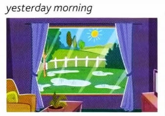 Yesterday morning I got up and looked out of the window. The sun was shining, but the ground was very wet.