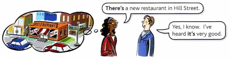 - We went to the new restaurant. It's very good. (It = the restaurant)