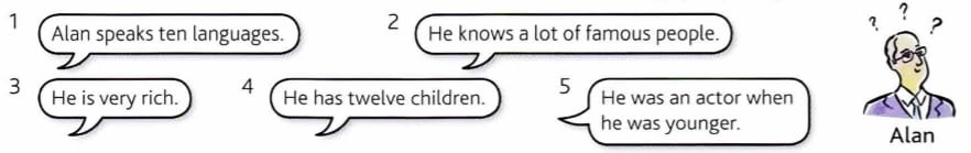 Nobody is sure whether these things are true. Write sentences about Alan using