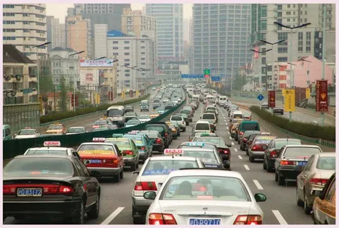 The traffic jams in the city are terrible in the rush hour [times when everyone is going to work].