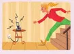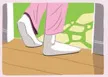 The phone was ringing. She went down the stairs quickly.