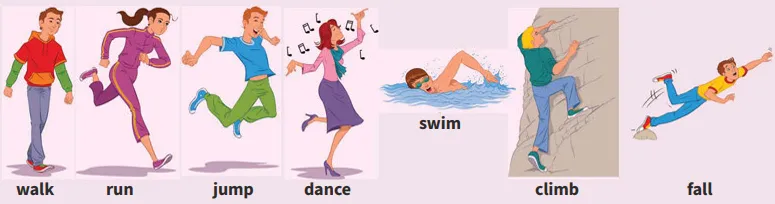 When talking about the past, we say: walked / ran / jumped / danced / swam / climbed / fell.