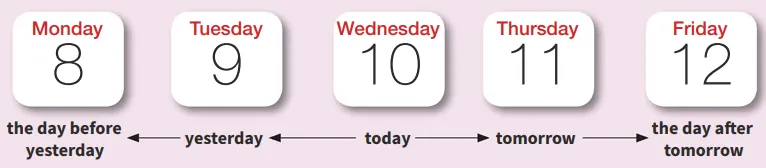 Sunday /ˈsʌndeɪ/, Monday /ˈmʌndeɪ/, Tuesday /ˈtʃuːzdeɪ/, Wednesday /ˈwenzdeɪ/, Thursday /ˈθɜːzdeɪ/, Friday, Saturday