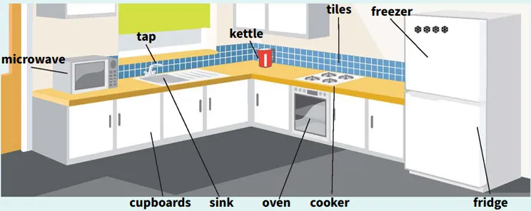 dishwasher [a machine for washing dishes]. Next to it, there’s a