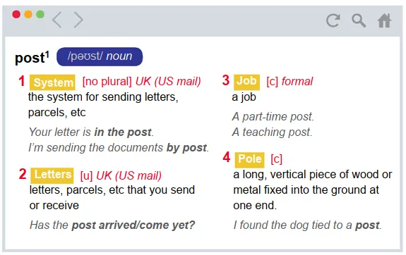 - Don’t just read the dictionary definition. Example phrases and sentences show you how a