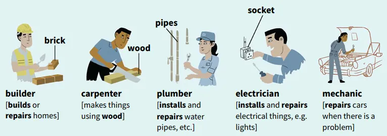 Write down one job from the vocabulary section that would be difficult for the person in 2–6,