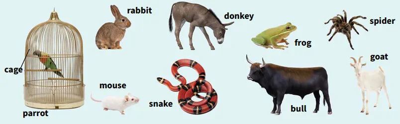pets, e.g. frogs, snakes and spiders.