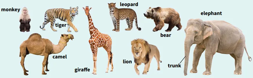 The pictures show a number of wild animals [animals that normally live in natural conditions]. If you