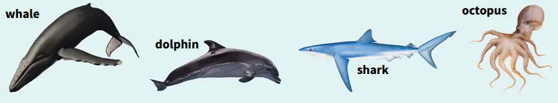 Many different creatures [living things, e.g. animals] live in the sea.