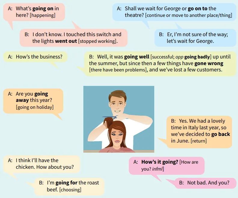 - My dad’s going grey [his hair is becoming grey] and my uncle is going bald [losing his hair].