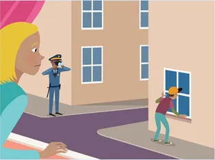Yesterday I glanced out of the window and noticed a policeman observing a house opposite through binoculars. I thought I glimpsed a man inside the house. Then I saw that there was a man peering into the window of the same house. I gazed at them wondering what they were doing. Suddenly the policeman stopped staring through his binoculars. He went to arrest the other man as he started to climb into the house through the window. I realised that I had witnessed a crime.