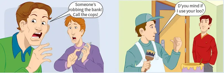Slang is extremely informal language. Slang helps to make speech vivid, colourful and interesting but it can easily be used inappropriately. Slang is mainly used in speech but it is also often found in the popular press and in literature. Slang changes very quickly, so some words go out of fashion, but you may meet them in novels and films. Some slang expressions may cause offence to some people. Here are some examples you may hear or read.