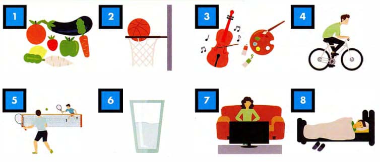 Match the activity words in the box with the pictures.