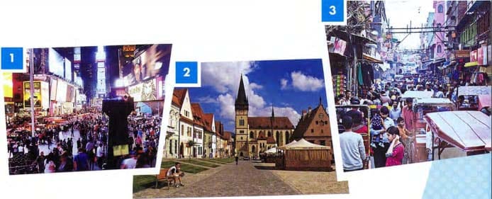 on the coast in the north-east in the centre outdoor inland busy crowded dirty exciting lively quiet hot humid mild industrial business financial tall historic ordinary modern old