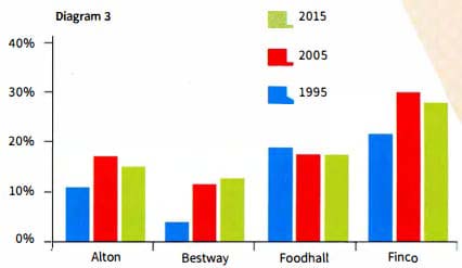 3. In 2005, all the supermarkets had 11% and 30% of the market.