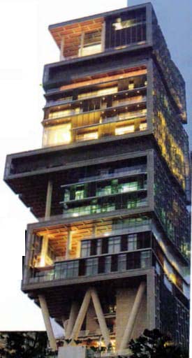 Several experts have criticised the architecture of this very expensive home, comparing it to an unstable pile of books'. Mrs Ambani, however, describes her home as 'an elevated house on top of a garden' and 'a modern home with an Indian heart'. |