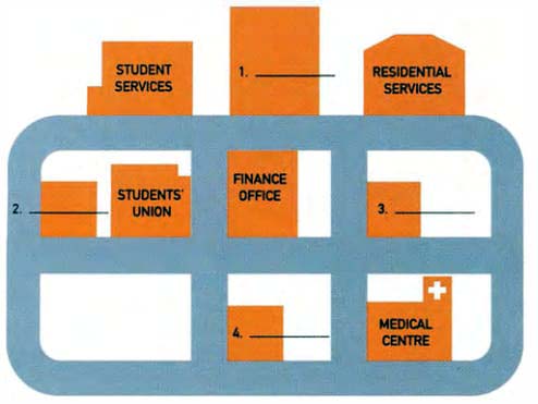 The main student facilities tend to be in just one area. Universities have a variety of services to offer students, from areas for sport and relaxation, to places for quiet study.