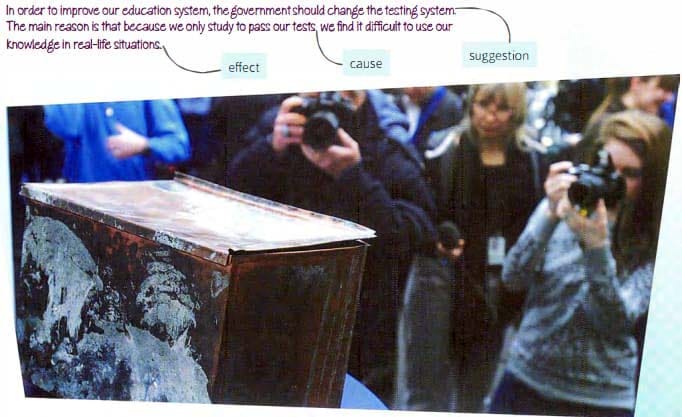 10. Your class is going to make a 'time capsule' that will be opened in the year 3000. You can include only TEN items in the capsule. In small groups, decide which items you will include, and justify your selection. To do this, try to give reasons, causes, effects and suggestions. Use the table to help you.