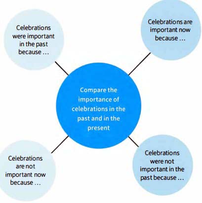03. With a partner, decide whether celebrations are more important now than in the past. Use more and less in your answer, and give reasons using your ideas from the chart.