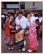 In Japan, boys and girls are considered to be adults at the age of 20. At this age, they are allowed to vote and drink alcohol. The second Monday in January is a national holiday called coming-of-Age Day. On this day, 20-year-olds celebrate by first going to a shrine2 with their families. Later, they listen to speeches3 given by city and school leaders. After that, many celebrate with family and friends late into the night.
