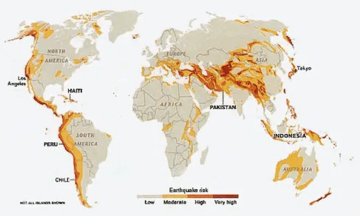 1. Look at the map above. Where do most earthquakes happen? Why do you think they happen in these places?