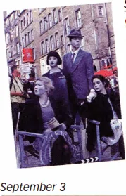 Christopher and I arrived at our hotel in Edinburgh last night. After checking in, we had dinner and explored the city streets. It was really fascinating but we went to bed soon after because we were so tired! Today we went to King's Theater to watch some short plays that are part of the Fringe Festival. People here call it "The Fringe," and it has an awesome variety of shows by all sorts of performing arts groups. A parade of actors greeted us as we walked down the street. They were waving colorful flags, one for each of the theater companies performing at the festival. It was a great way for us to start our festival experience. Christopher wants to hear some bands at the Jazz & Blues Festival, and we hope to see a good film tonight.